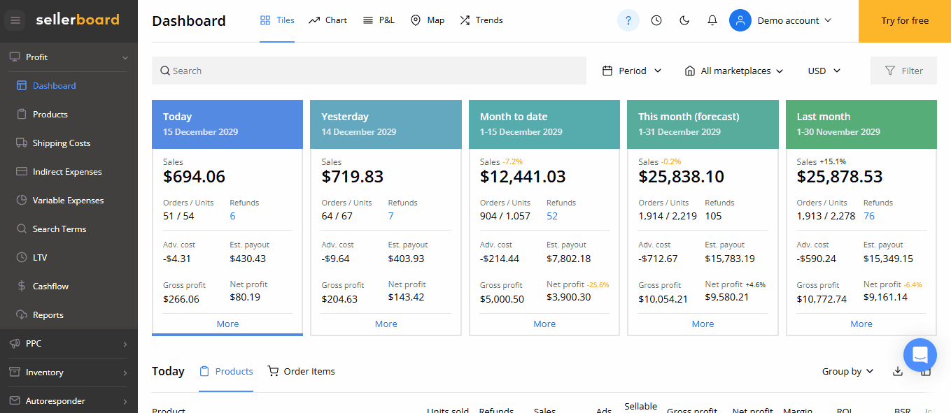 Variable Expenses are now available in sellerboard. They let you define costs that scale with your performance – and include them directly in your Profit Analytics.