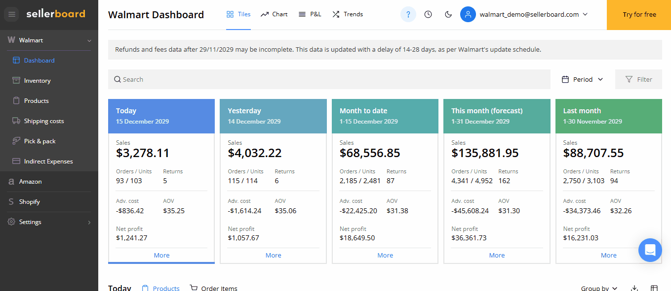 Walmart sellers can now plan inventory directly inside sellerboard. The new Walmart Inventory Planner gives you full control over SF and WFS stock, demand forecasting, and reorder timing — in one structured workflow.